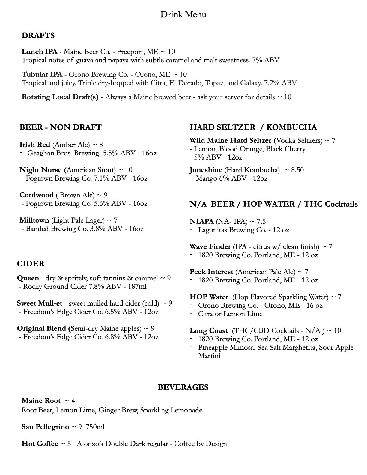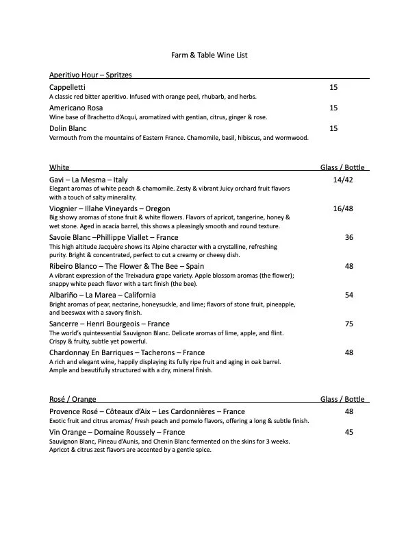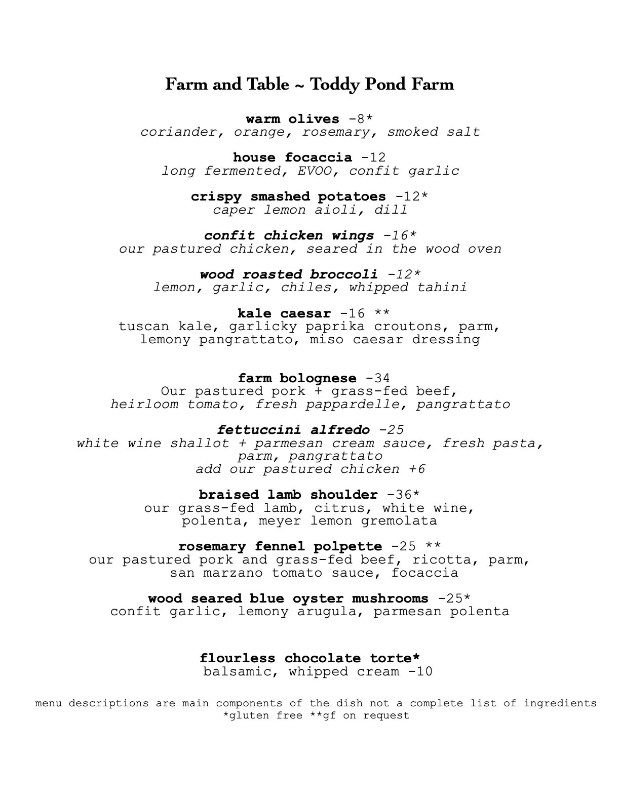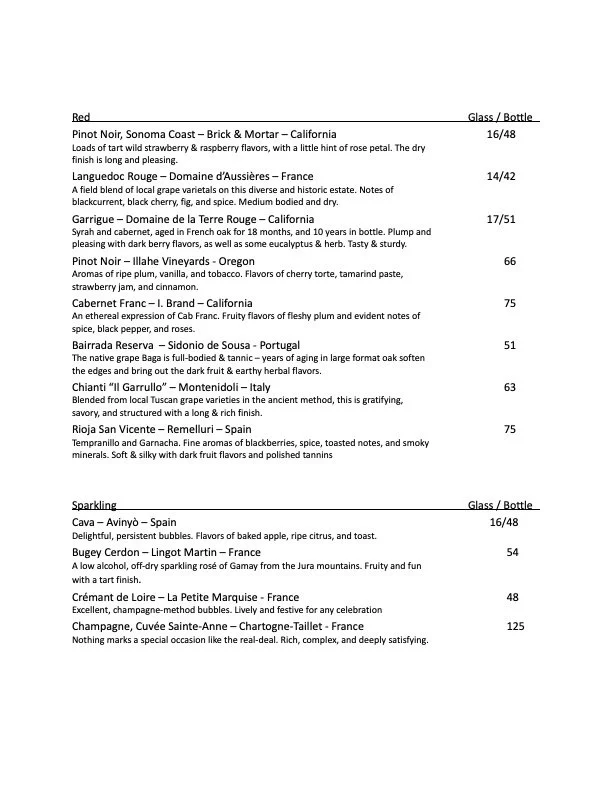 February Menu - changes weekly
